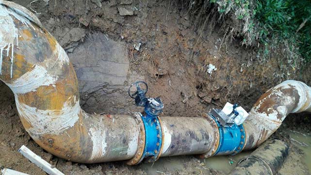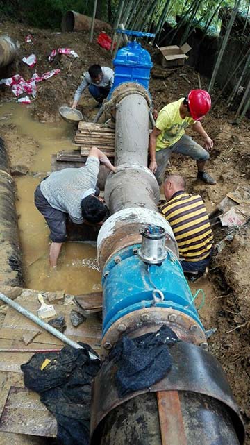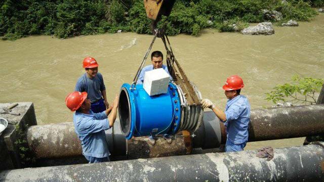 城鄉(xiāng)一體化供水計量電池供電電磁流量計安裝現(xiàn)場